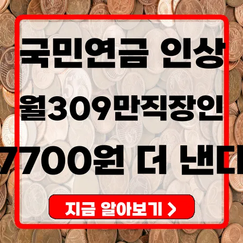 2025년부터는 월 309만 원 받는 직장인 기준으로 국민연금이 매달 약 7,700원 인상된다고 합니다.